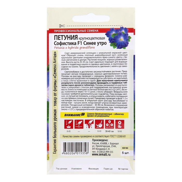 Семена цветов Петуния Софистика "Синее Утро", Сем. Алт, ц/п, 5 шт
