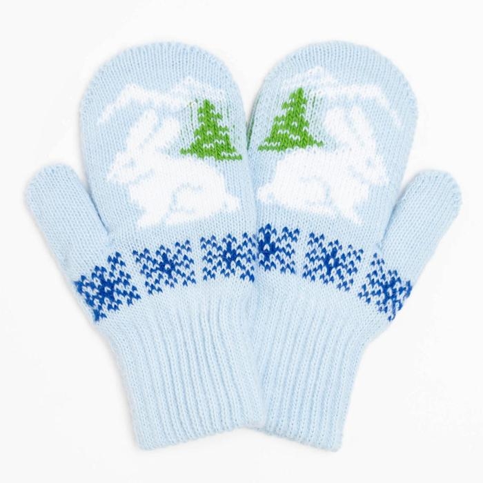 Новый год. Варежки двойные детские, цвет голубой, размер 10 (0-3 года)