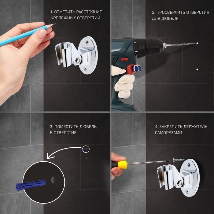 Держатель для душевой лейки ZEIN Z86, пластик, цвет хром