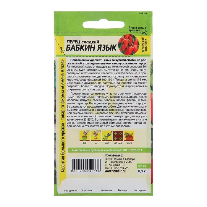 Семена Перец сладкий "Бабкин Язык", Сем. Алт, ц/п, 0,1 г