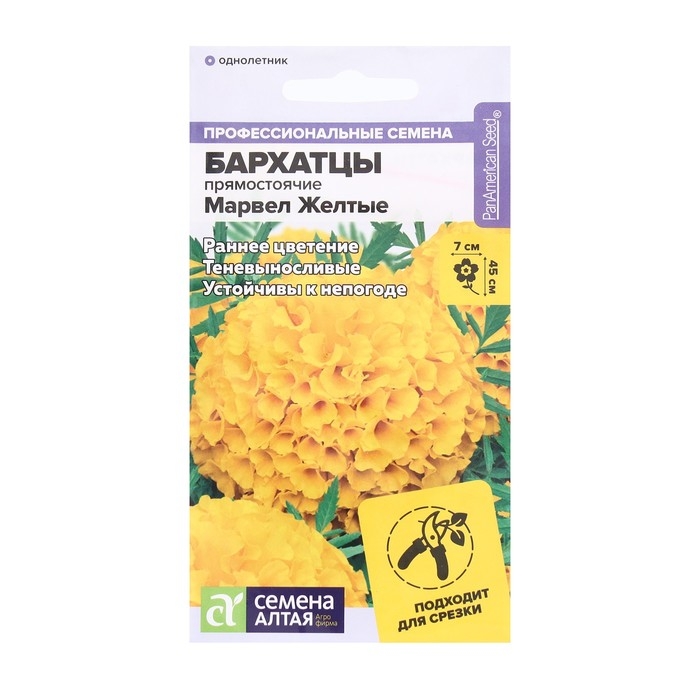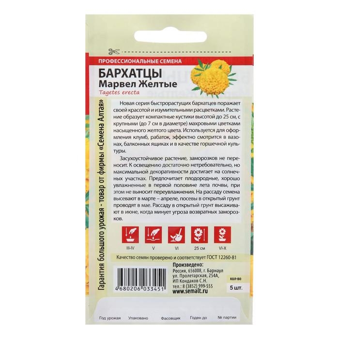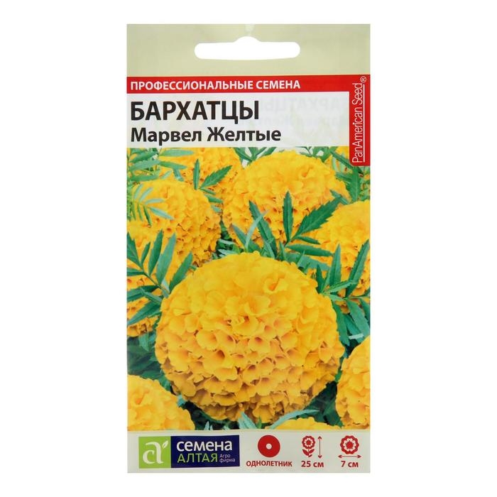 Семена цветов Бархатцы "Марвел", желтые, Сем. Алт, ц/п, 5 шт