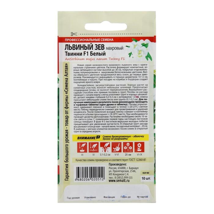 Семена цветов Львиный зев Твинни "Белый", махровый, Сем. Алт, ц/п, 10 шт