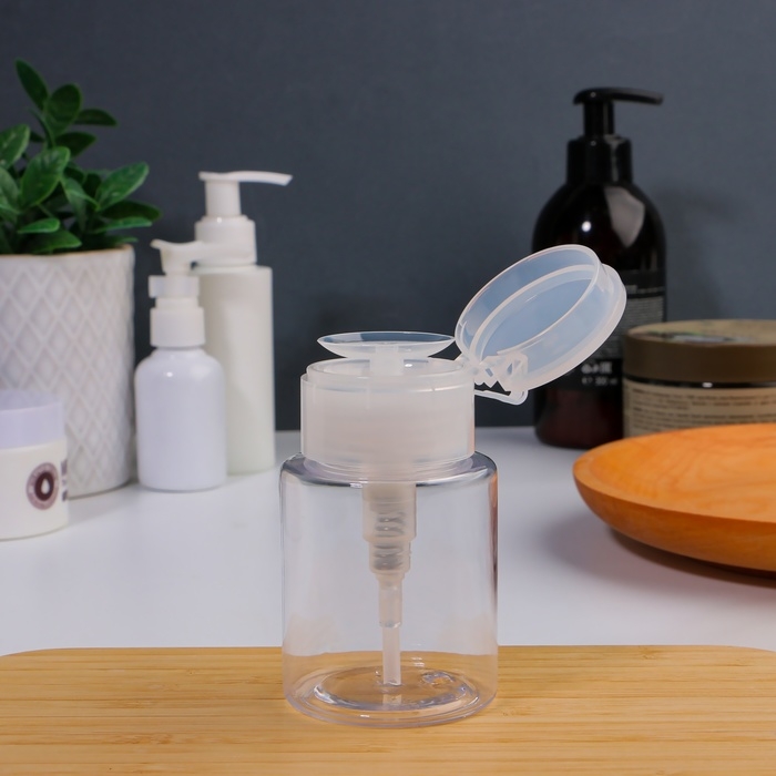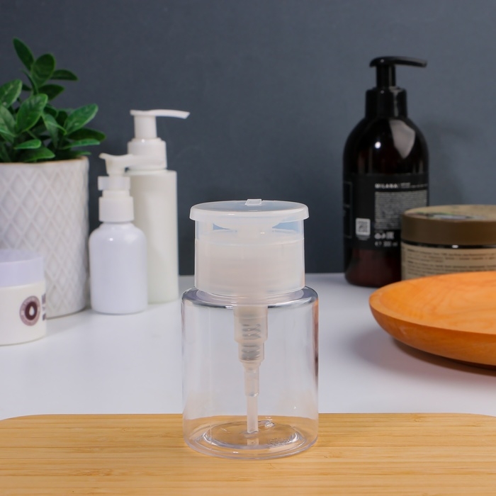 В данной баночке удобно хранить средство для снятия лака, лосьон для лица и другие косметические составы: они не выветрятся и не вытекут. Ёмкостью очень легко пользоваться: просто положите сверху ватный диск и нажмите на помпу, чтобы он пропитался содержимым. Такая система уменьшает расход материала и делает процедуру быстрее и приятнее.