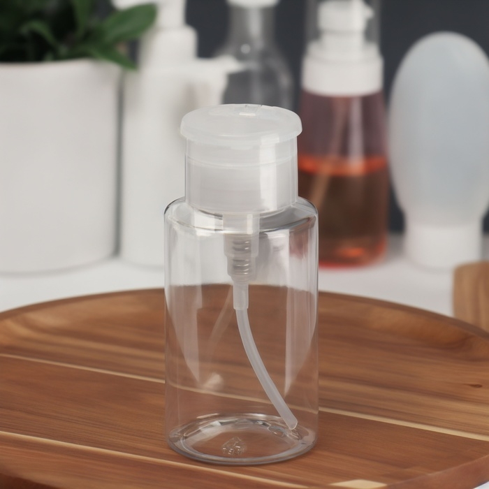 В такой баночке удобно хранить средство для снятия лака, лосьон для лица и другие косметические составы: они не выветрятся и не вытекут. Ёмкостью очень легко пользоваться: просто положите сверху ватный диск и нажмите на помпу, чтобы он пропитался содержимым. Такая система уменьшает расход материала и делает процедуру быстрее и приятнее.