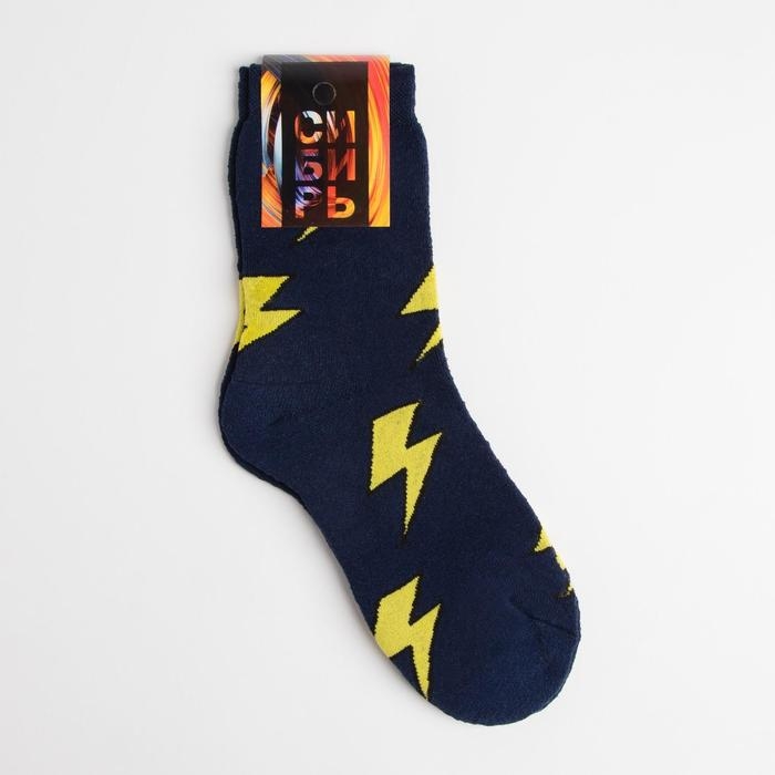 Носки мужские махровые «Молнии», цвет тёмно-синий, размер 25