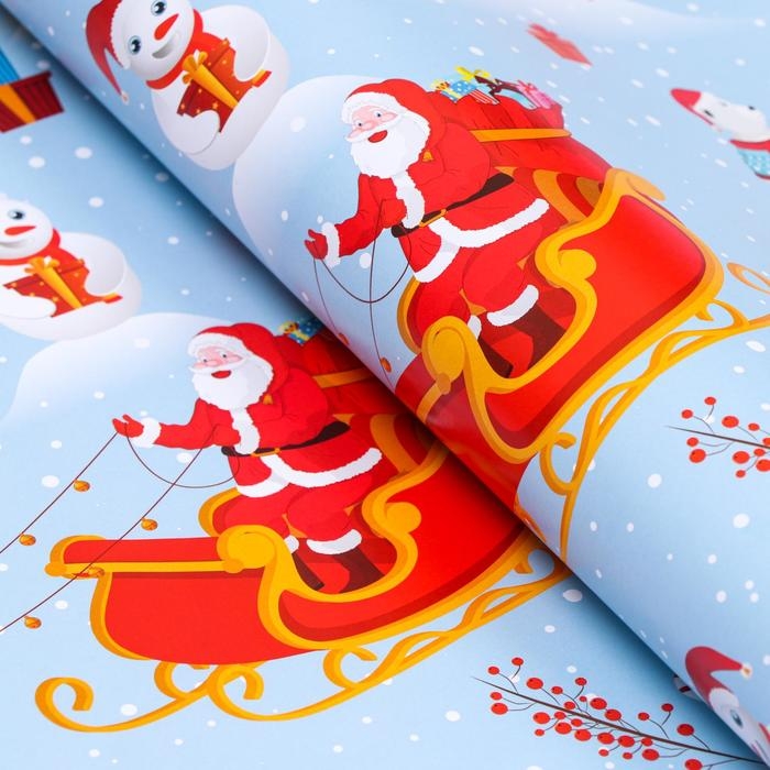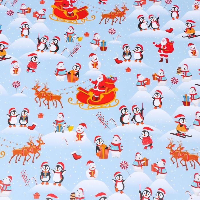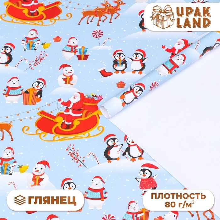 Новый год. Бумага упаковочная глянцевая "Рождество на Северном полюсе", 70 х 100 см,1 лист