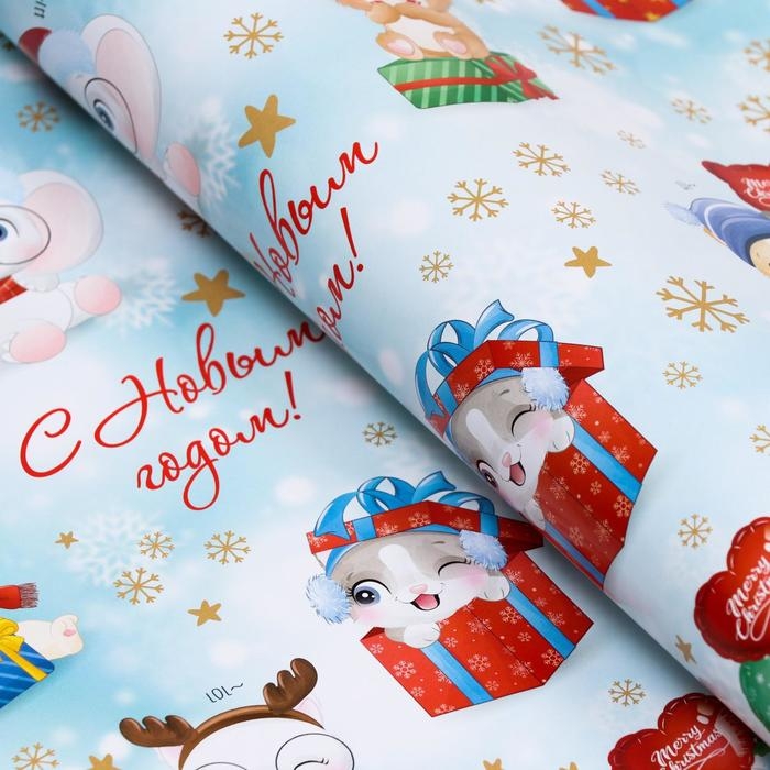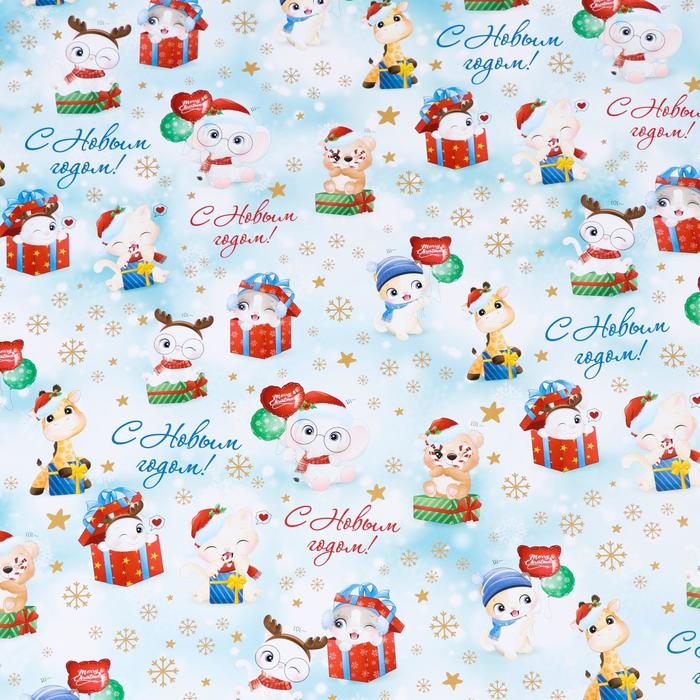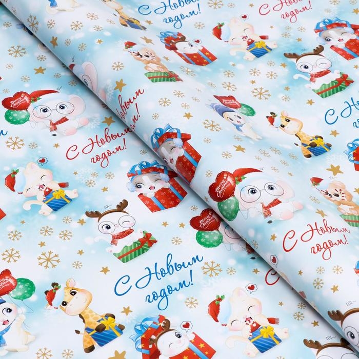 Новый год. Бумага упаковочная глянцевая "Милые зверята", 70 х 100 см, 1 лист