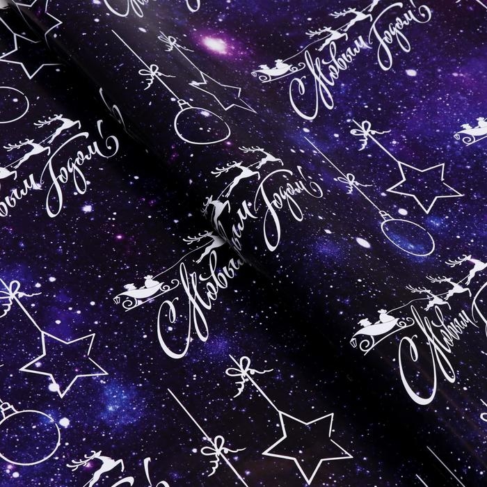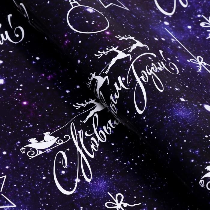 Новый год. Бумага упаковочная глянцевая "С новым годом", 70 х 100 см, 1 лист