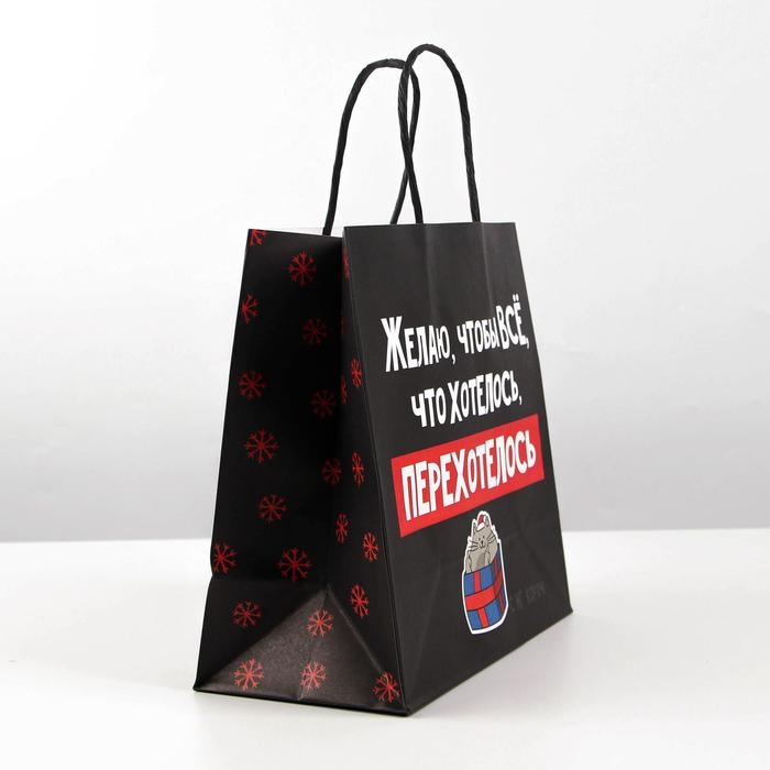 Пакет подарочный новогодний «Чтобы всё хотелось», 22 х 22 х 11 см, Новый год