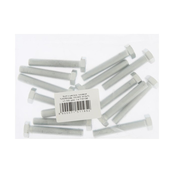 Болт ТУНДРА, оцинкованный, DIN 933, класс прочности 8.8, М12х70 мм, 1 кг