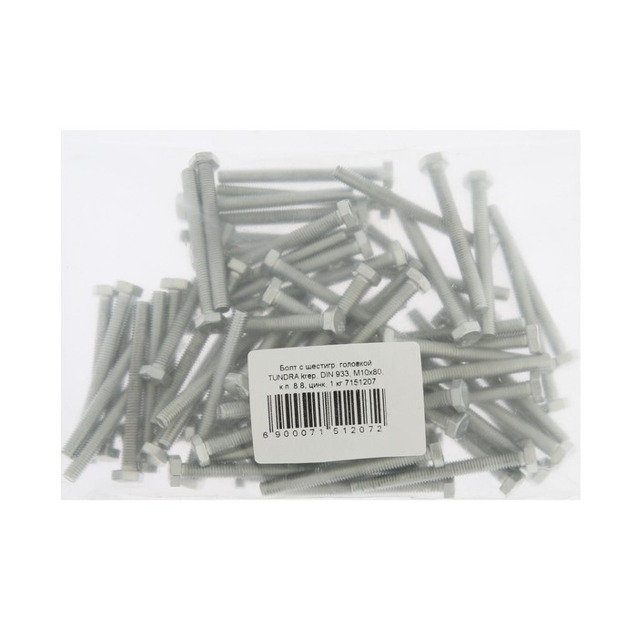 Болт ТУНДРА, оцинкованный, DIN 933, класс прочности 8.8, М10х80 мм, 1 кг