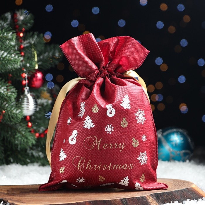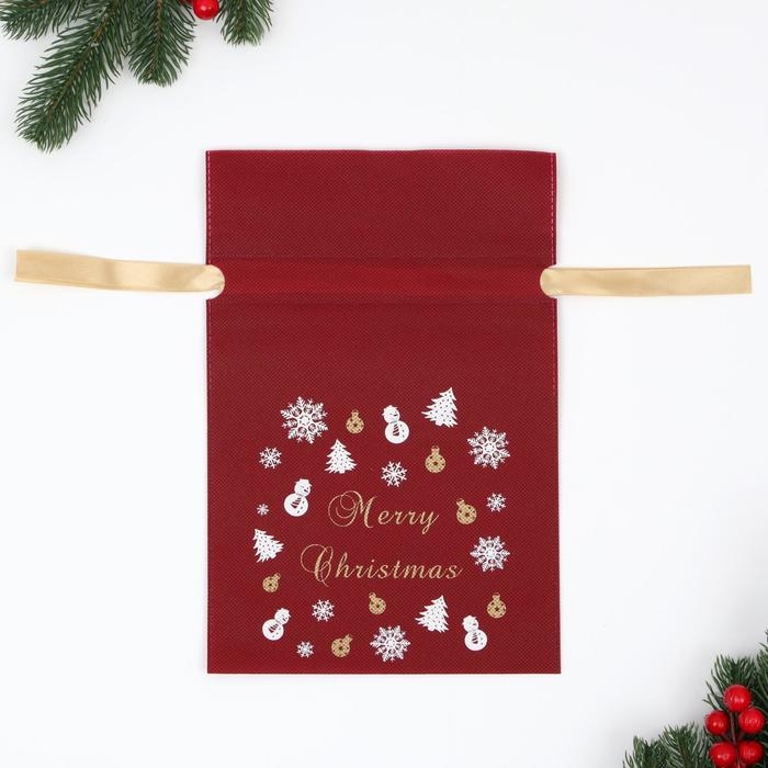 Мешок для подарков «Снеговичок и снежинки», на завязках, 29 × 22 см