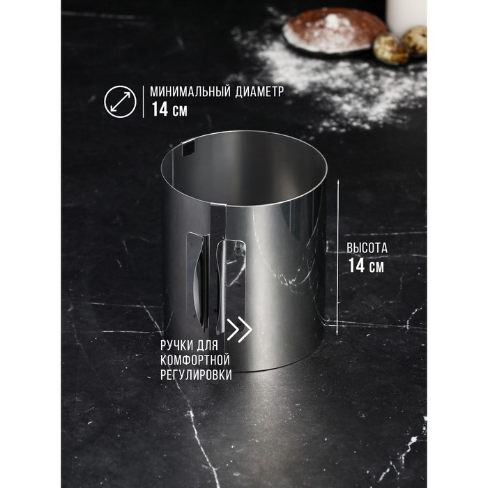 Форма для выпечки и выкладки с регулировкой размера «Круг», h-14 см, d-14-20 см