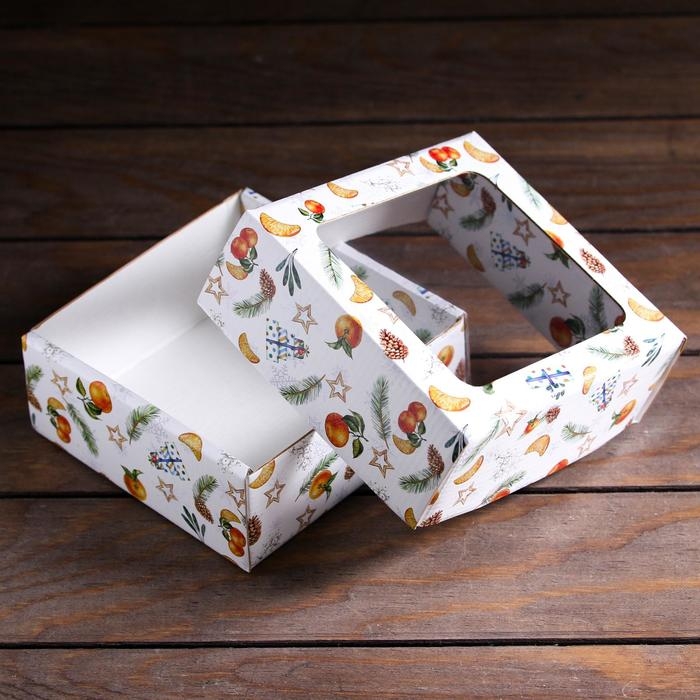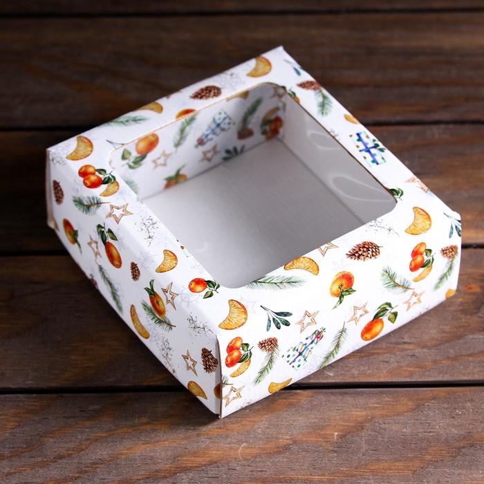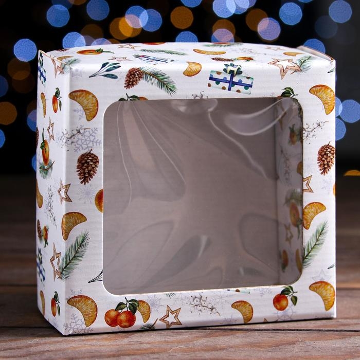 Новый год. Коробка подарочная, крышка-дно, с окном "Новогоднее настроение", 14,5 х 14,5 х 6 см.