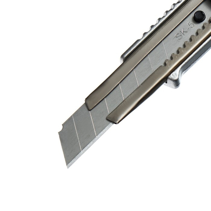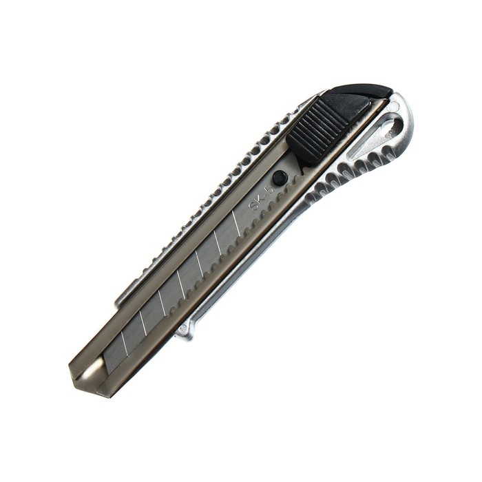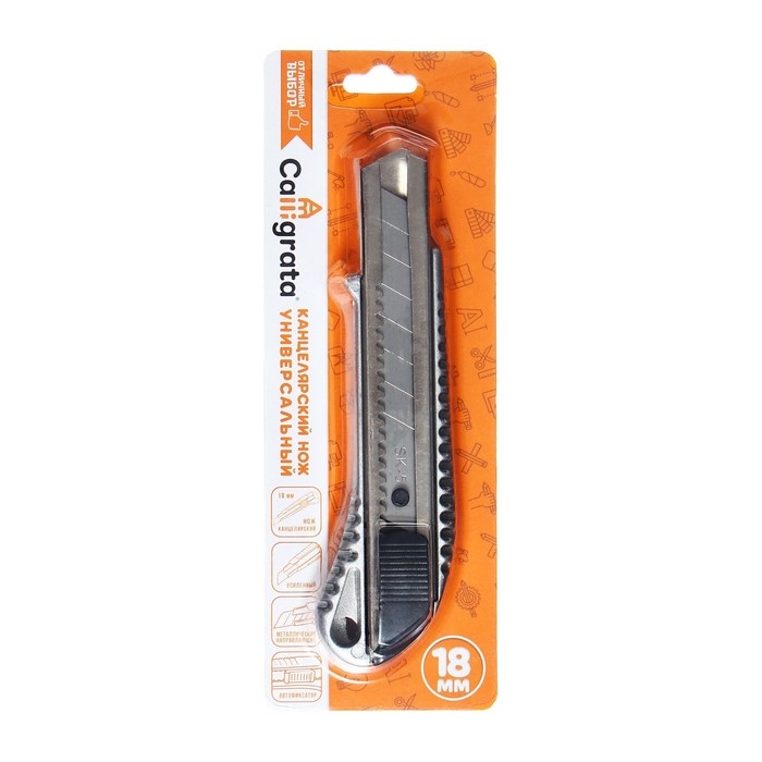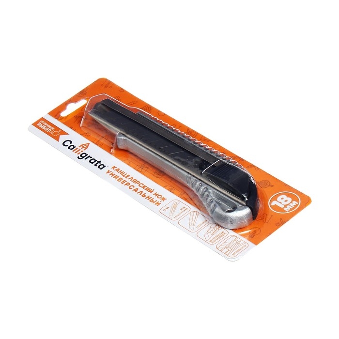 Нож канцелярский, 18 мм, металл с металлическим направляющим фиксатором, на блистере