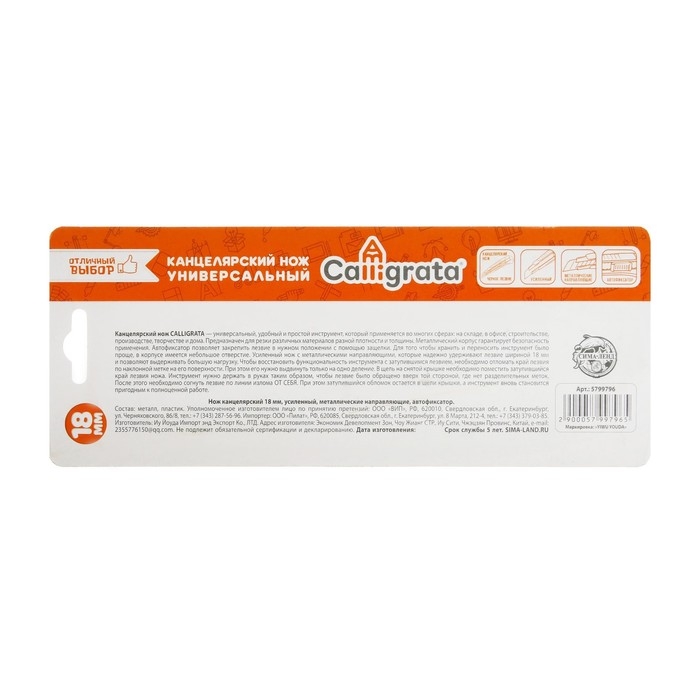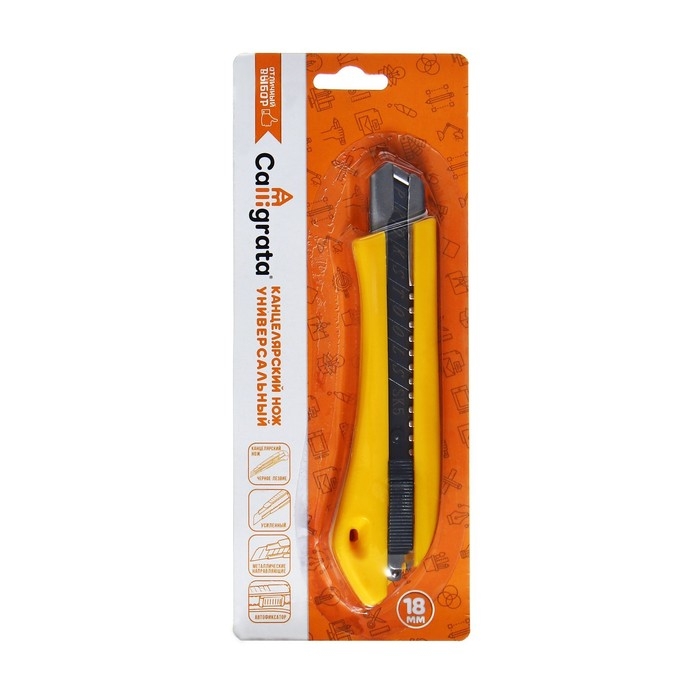 Нож канцелярский, 18 мм, металл с металлическим направляющим фиксатором, на блистере