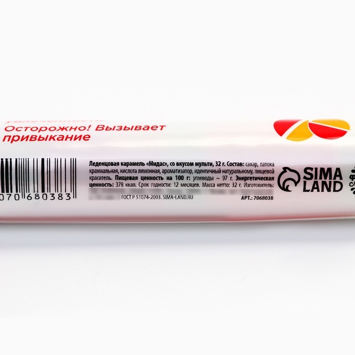 Состав: сахар, патока крахмальная, кислота лимонная, ароматизатор, идентичный натуральному, пищевой краситель.