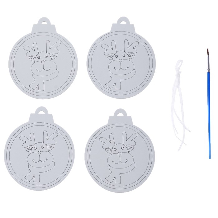 Ёлочное украшение под раскраску «Олень» 4 шт., кисть