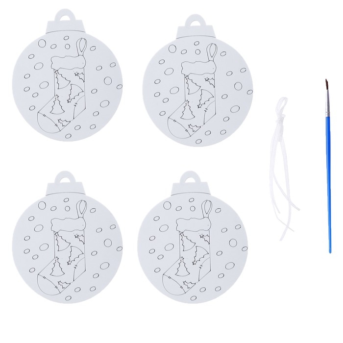 Ёлочное украшение под раскраску «Ёлки» 4 шт., кисть