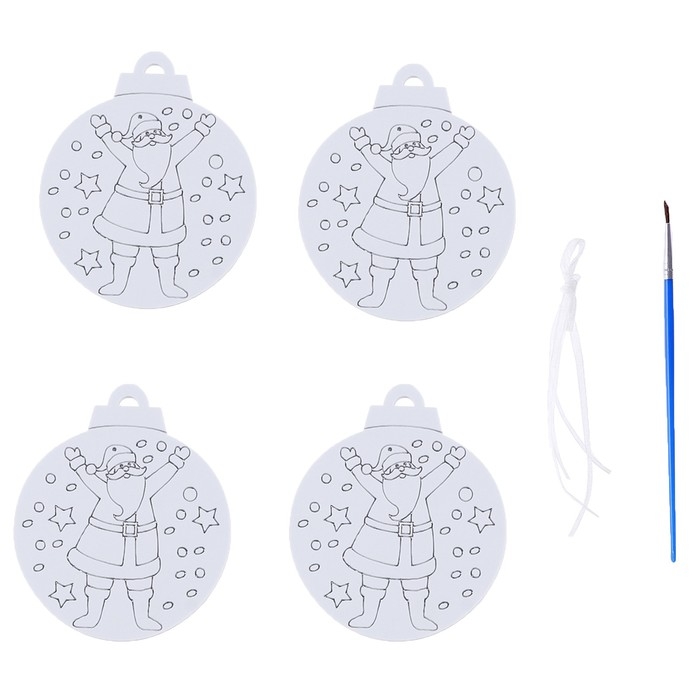 Ёлочное украшение под раскраску «Радость» 4 шт., кисть