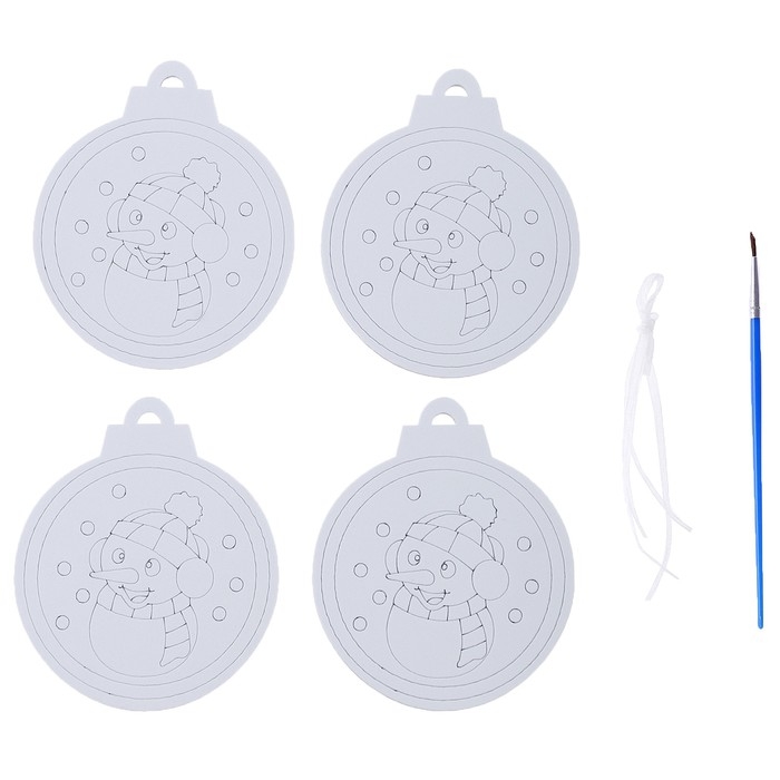 Ёлочное украшение под раскраску «Весельчак» 4 шт., кисть