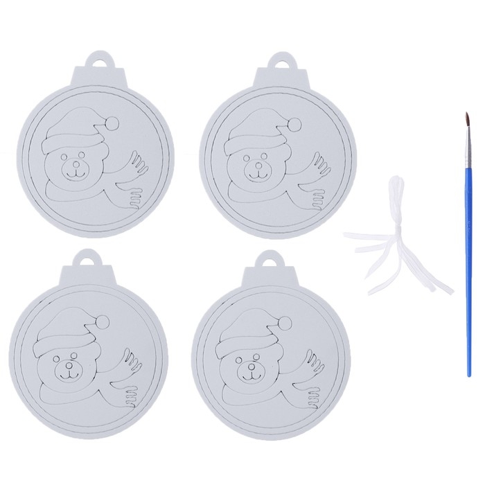 Ёлочное украшение под раскраску «Мишка» 4 шт., кисть