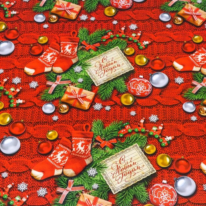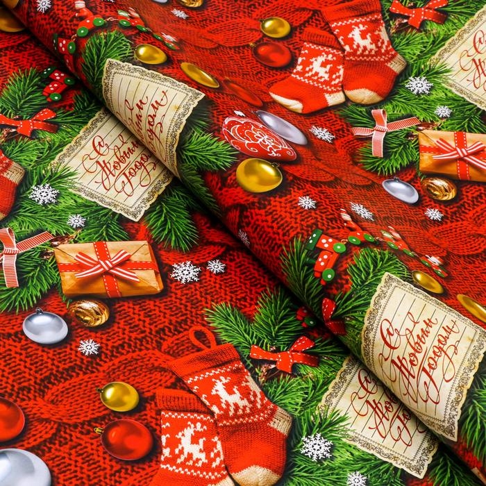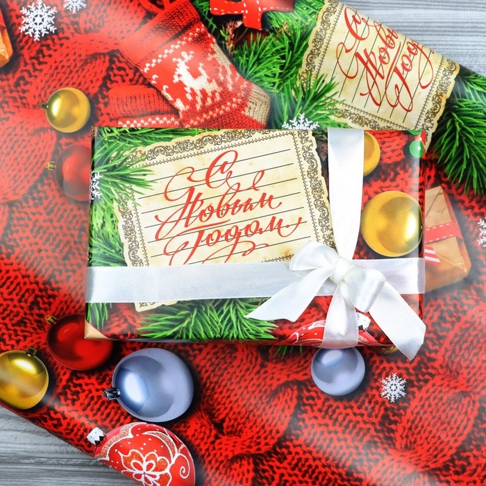 Новый год. Бумага упаковочная глянцевая "С Новым Годом!", 70 х 100 см,1 лист