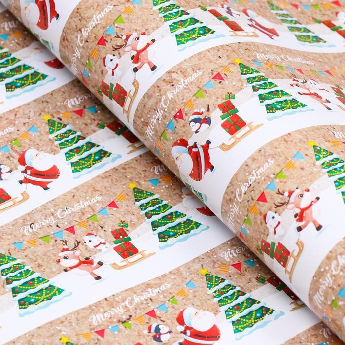 Новый год. Бумага упаковочная глянцевая "Новогоднее путешествие", 70 х 100 см,1 лист
