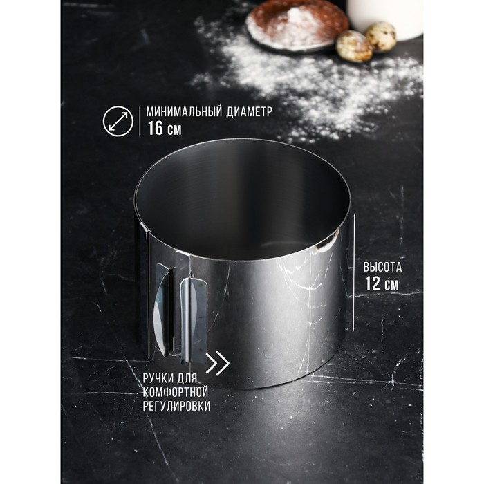 Форма для выпечки и выкладки с регулировкой размера «Круг», h-12 см, d-16-30 см