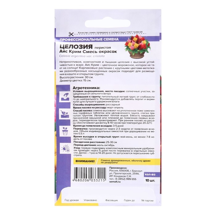 Семена цветов Целозия Айс Крим, смесь окрасок, перистая, Сем. Алт, ц/п, 10 шт