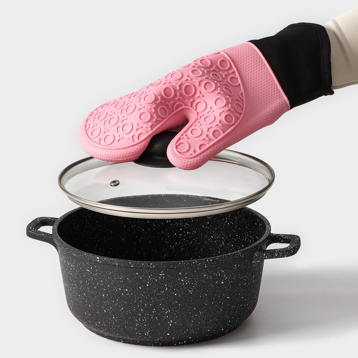 Рукавица для горячего с манжетой Доляна «Профи», силикон, 36×18,5 см, цвет МИКС