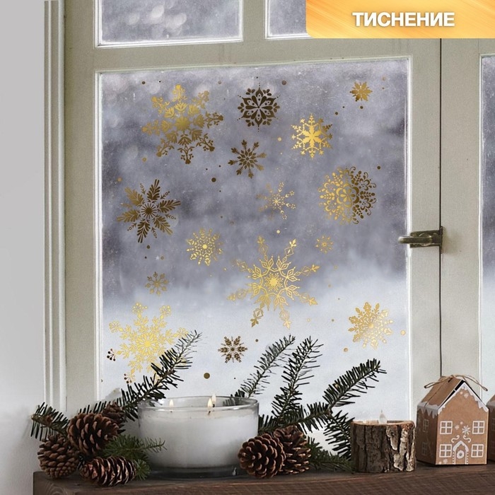 Наклейки новогодние виниловые с фольгированием «Снежинки», 30 х 50 см, Новый год