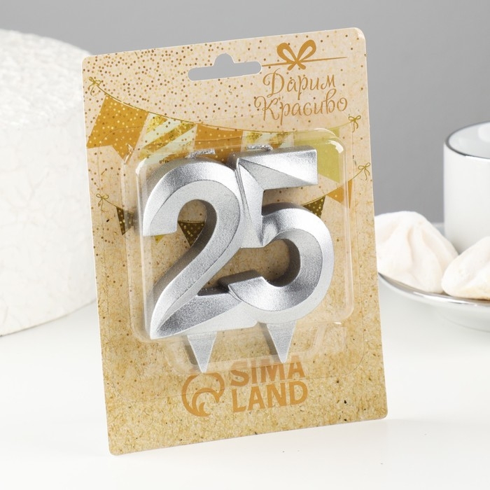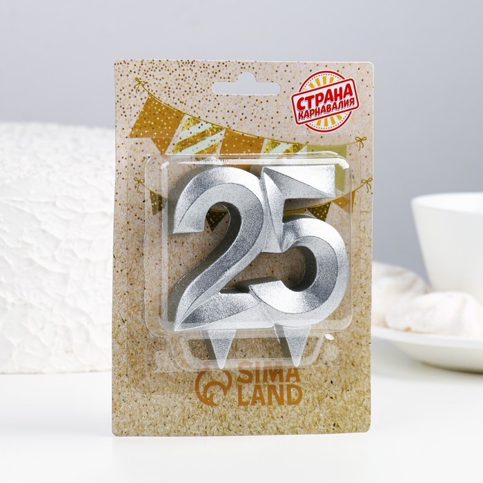 Свеча в торт юбилейная "Грань", цифра 25, серебро
