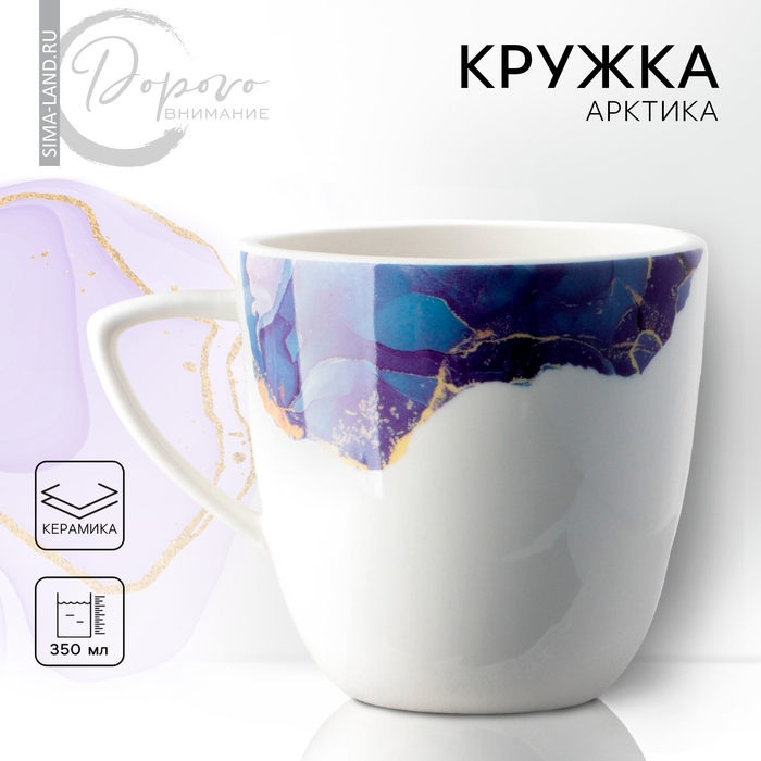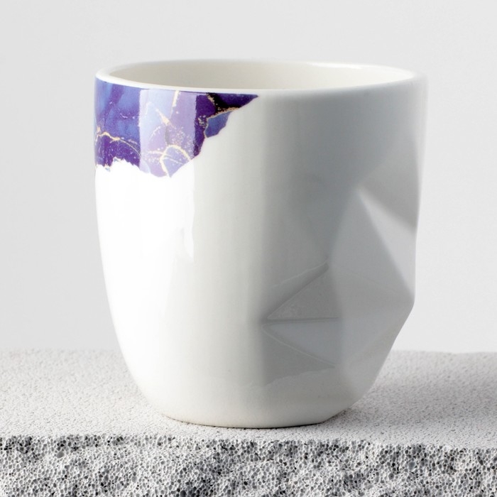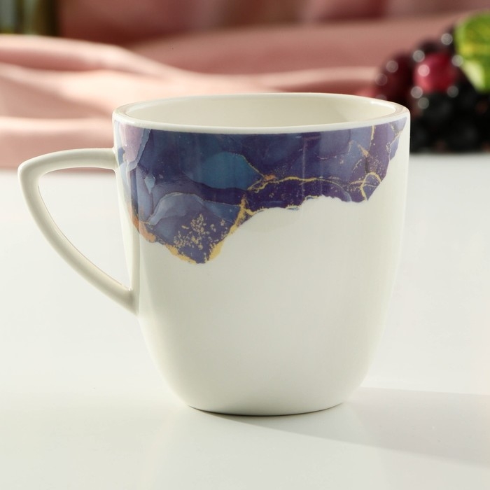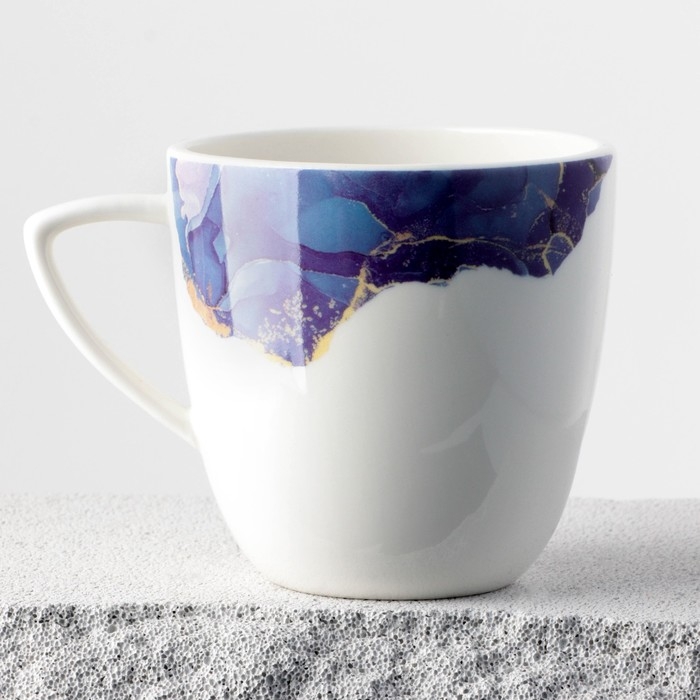 Кружка керамическая «Мрамор», бело-синяя, 350 мл, цвет белый
