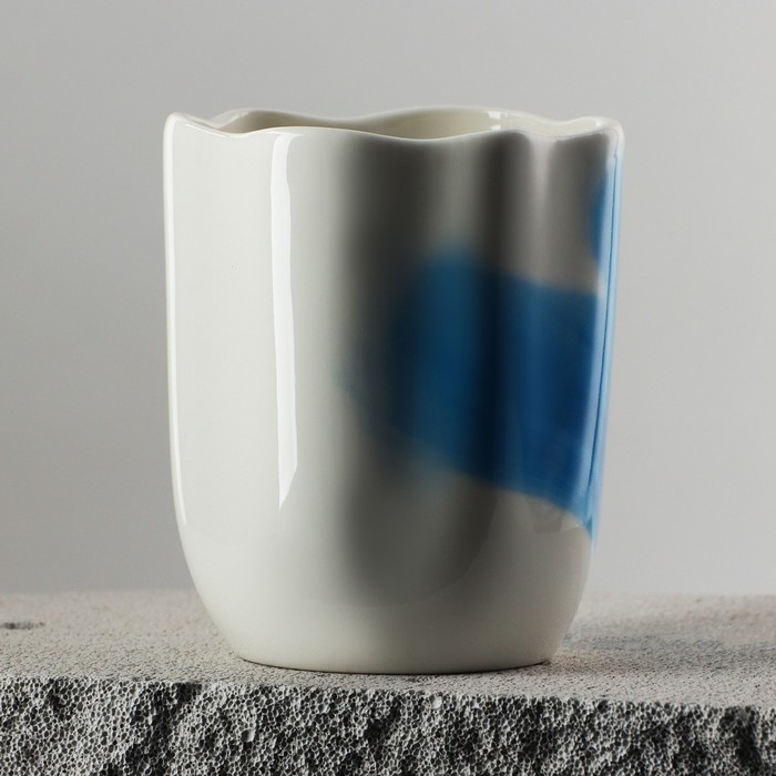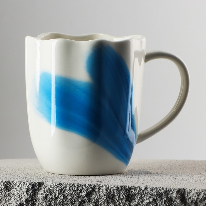Кружка керамическая неровный край «Разводы», 350 мл, цвет голубой
