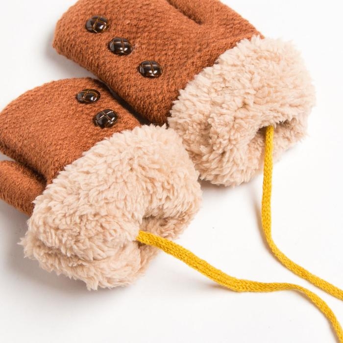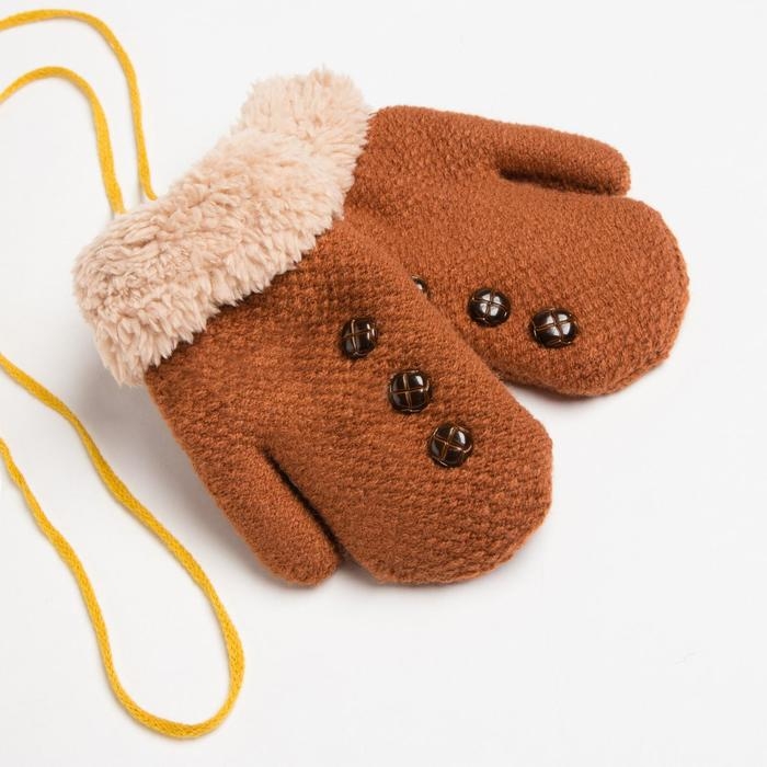 Варежки детские MINAKU с пуговичками, 15 р-р (15 см), цв.коричневый