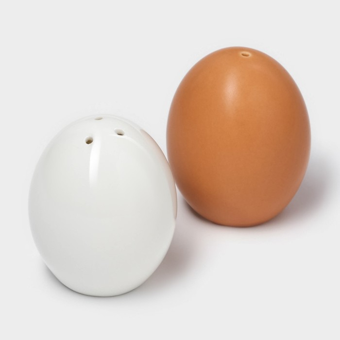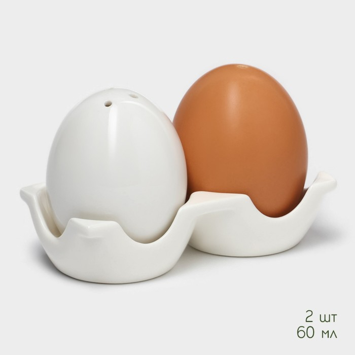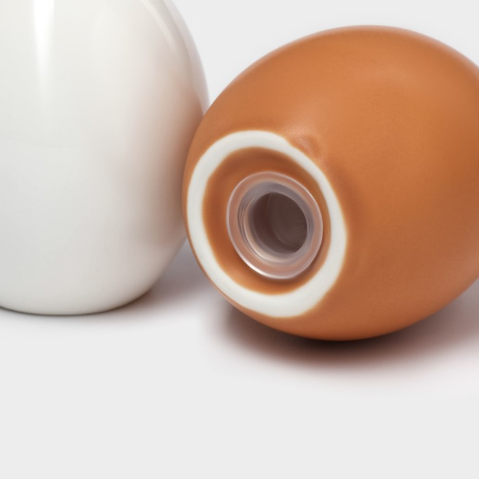 Набор фарфоровый для специй BellaTenero «Яйца», 3 предмета: солонка 60 мл, перечница 60 мл, подставка, цвет белый и бежевый