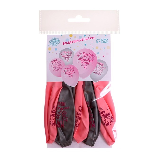 Воздушный шар латексный 12" "Моей любимой маме", 5 шт.