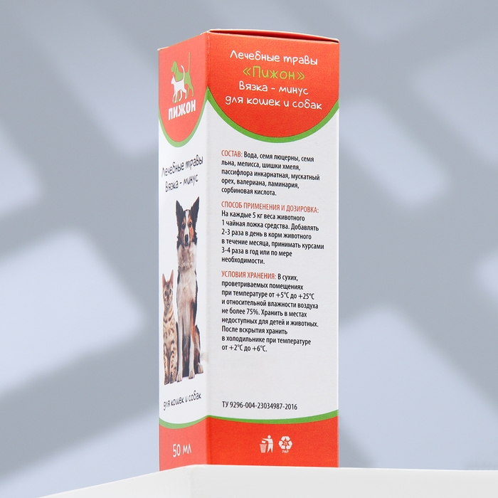 Лечебные травы "Пижон" для собак и кошек, вязка-минус, 50 мл