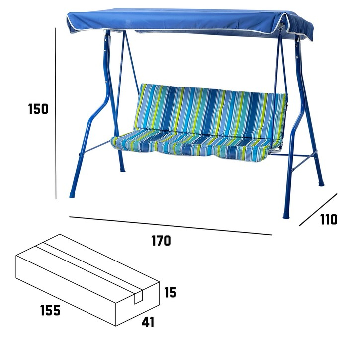 Качели садовые "Уют" синие, 170 х 150 х 110 см, максимальная нагрузка 210 кг
