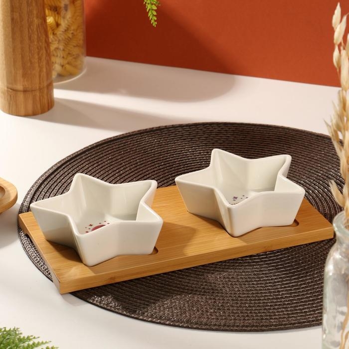 Соусники на деревянной подставке «Космически вкусно», 100 мл, 2 шт