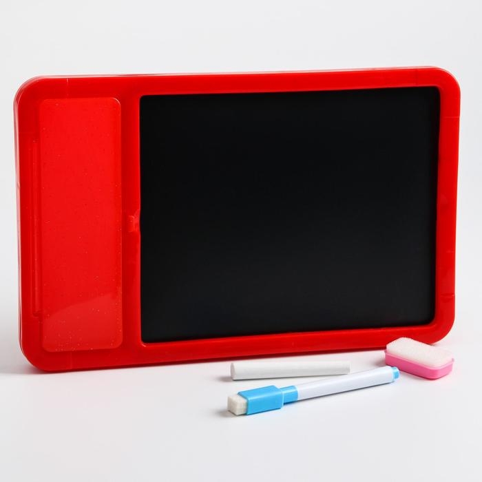 Доска магнитная двухсторонняя, под маркер и мел, губка, мел 3 шт., маркер, магниты 2 шт.