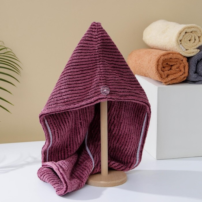 Чалма для сушки волос Доляна, микрофибра, с пуговкой, цвет бордовый