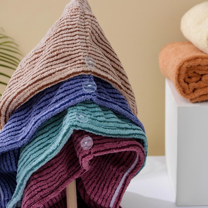 Чалма для сушки волос Доляна, микрофибра, с пуговкой, цвет МИКС