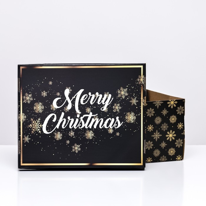 Новый год. Подарочная коробка складная, новогодняя "Счастливого Рождества", 31,2 х 25,6 х 16,1 см.