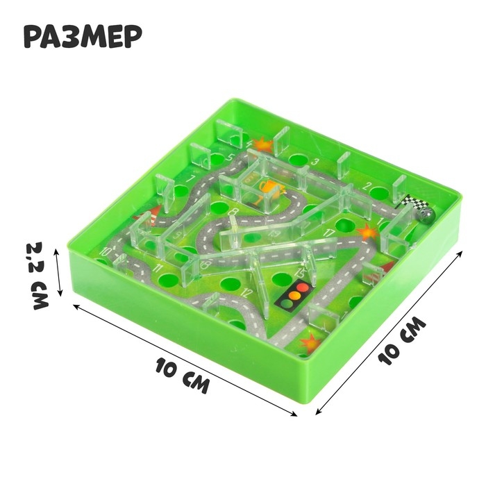 Занимательная игра-головоломка «Крутой заезд» представляет собой игровое поле, шарик и множество лунок-отверстий с извилистыми дорожками.