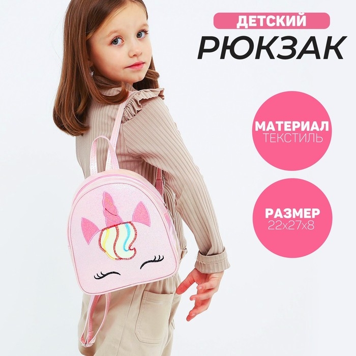 Рюкзак детский для девочки с блестками «Единорог», цвет розовый