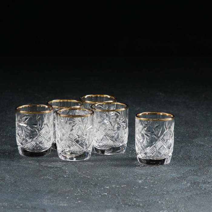 Набор стопок хрустальных для вина «Мельница», отводка золотом, 35 мл, 6 шт