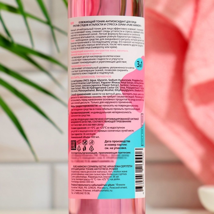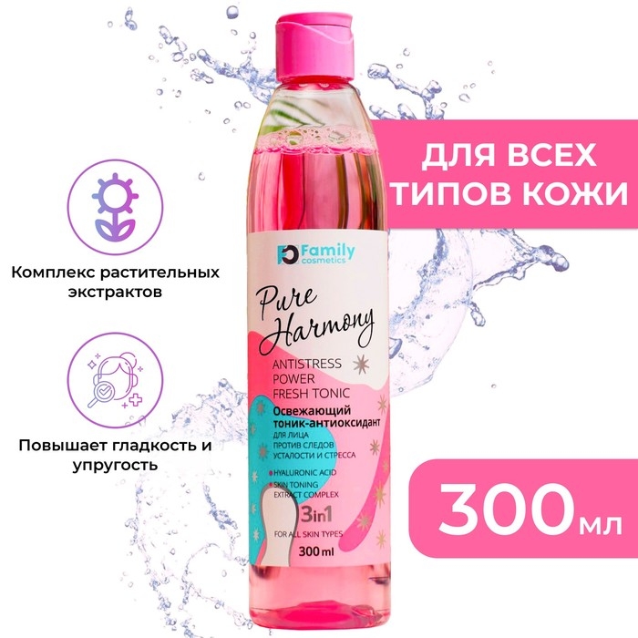 Освежающий тоник - антиоксидант для лица против следов усталости и стресса, 300 мл