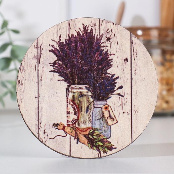 Подставка под горячее сувенирная "Лавандовый букет" D=9 см